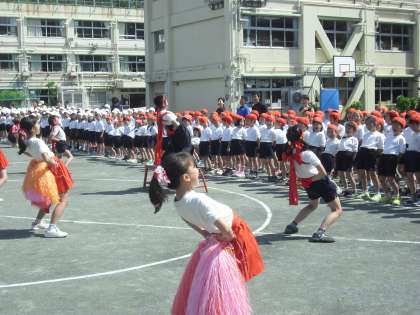 5/22 全体練習 公開日 2014/05/22 更新日 2014/05/22 今日のできごと 今日は最後の全体練習でした。まずはじめに全員で入場の仕方を確認しました。行進にも力強さが出てきました。その後は応援の練習。赤も白も応援団の頑張りに引っ張られながら、本番さながらの白熱した応援合戦でした。 運動会を2日後に控え、子どもたちの気持ちもどんどん高まっています。