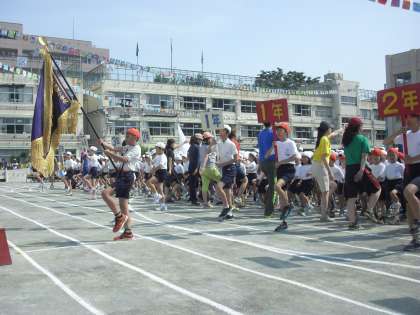 5/24 運動会1 公開日 2014/05/24 更新日 2014/05/24 今日のできごと すばらしい晴天のもと、いよいよ用賀小学校の運動会が始まりました。子どもたちの堂々とした入場行進の後は開会式。まだ入学して間もない1年生の代表が立派なはじめの言葉を述べました。 応援合戦の後に最初の得点種目の全校競技大玉送り。白熱した戦いでしたが、見事白組が勝利しました。 これから子どもたちのどんな競技や演技が繰りひろげられるのか、楽しみです。