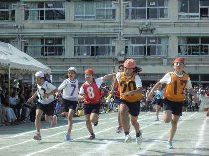 運動会のフィナーレを飾るのは高学年リレー。高学年リレーの子どもたちは毎日朝早くから練習を重ね、技術とチーム力を高めてきました。どのチームもすばらしい走りで手に汗握るレースで、会場全体が大変な盛り上がりでした。