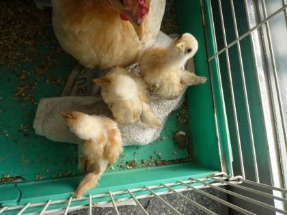 10/28 ちゃぼのひなが大きくなりました! 公開日 2009/10/28 更新日 2009/10/28 校長室より 9月25日に学校日記に掲載したチャボのひながずい分と大きくなりましたので写真で紹介します。手を出すとひょいっと乗ってきました。もう羽をばたつかせてジャンプもできるのです。可愛いですよ!