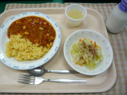 今日は、チリビーンズライスに入っている「大豆」のクイズを出したいと思います。大豆は「畑の肉」と言われていますが、なぜでしょうか?