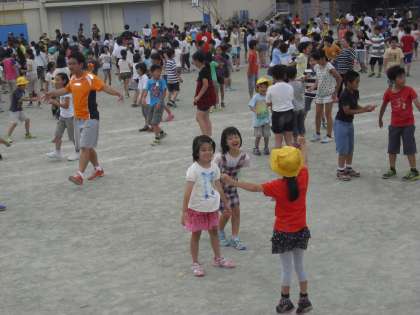 6/4 ゲーム集会 公開日 2014/06/04 更新日 2014/06/04 委員会・クラブ活動 今日のゲーム集会は校庭で退化ゲームをしました。2人組になり、じゃんけんで負けると、人→鳥→ペンギン というように変わっていき、最後まで人でいられた子が勝ちになります。 ゲームでは他の学年の子とも楽しくかかわりがもてました。集会委員会の子どもたちがしっかりと進行をし、みんなで楽しい時間を過ごすことができました。