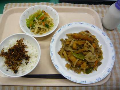 6/4 本日の給食 公開日 2014/06/04 更新日 2014/06/04 給食 〜今日の献立〜 ごはん かみかみ佃煮 牛乳 きんぴら煮 野菜のからしじょうゆ和え 〜給食メモ〜 6月4日は、「むし歯予防デー」です。そこで今日の献立には、かみごたえのあるじゃこや昆布が入った「かみかみ佃煮」を出しました。クイズです。一口、何回かむとよいと言われているでしょうか? 1.5回 2.10回 3.30回 ※クイズのこたえは、「食材がとれたところ…」の最後にのせています。 食材がとれたところ・・・ 閉じる 米…埼玉県 豚肉…青森県 じゃこ…瀬戸内海 じゃがいも…長崎県 こまつな…東京都(江戸川区) れんこん…熊本県 にんじん…徳島県 ごぼう…青森県 さやえんどう…茨城県 もやし…群馬県 クイズのこたえは、3の「30回」です。よくかむと、だ液がたくさん出るので、むし歯を予防してくれます。一口30回を目標に、しっかりかんで食べるようにしましょう。