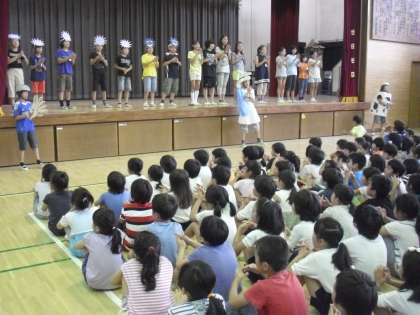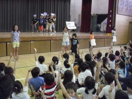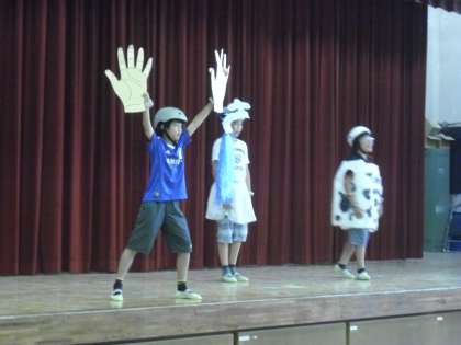 6/18 発表集会 公開日 2014/06/18 更新日 2014/06/18 委員会・クラブ活動 今日は保健委員会の発表集会。保健委員会の子どもたちが手洗いの大切さや正しい手洗いの仕方を、楽しい劇やクイズを通して全員に伝えてくれました。 劇もクイズもよく練られ、練習もされていて、会場からは何度も笑いが起きました。そして楽しい中にも伝えることがしっかりとある内容でした。 さっそく今日の手洗いから子どもたちの意識が高まりそうです。