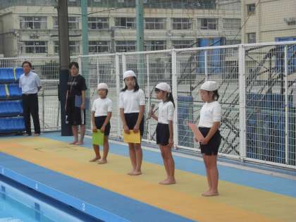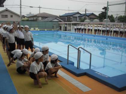 今日の3年生と4年生のプール開きは、残念ですが低温のため体操着を着てセレモニーのみを行い、次回からの水泳学習に備えることにしました。