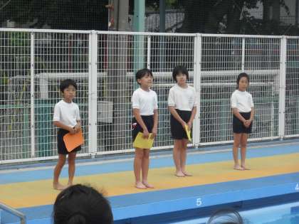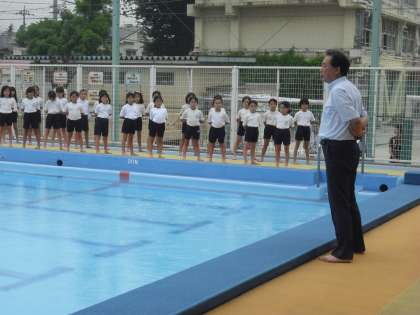 6/18 3年プール開き 公開日 2014/06/18 更新日 2014/06/18 学年 3年生も体操着でのプール開きとなりました。先生から、話を聞くこと、約束を守ること、めあてをもつことの大切さや意義を教わり、心に刻むことができました。 代表の児童もしっかりと言葉を述べることができ、内容のあるプール開きとなりました。