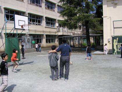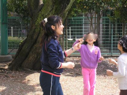 子どもたちとハンドベースや桜の花びら空中とりをしています。