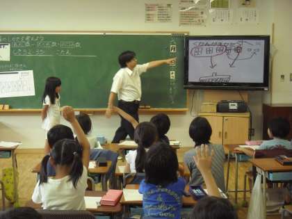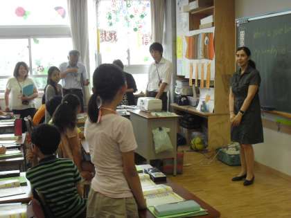 今回は京西小の先生が算数・音楽・英語活動の授業をしました。どの授業も子どもたちの意欲を引き出す工夫がなされ、子どもたちは熱心に学習に取り組んでいました。