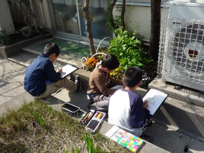 校庭の花壇には、きれいな花がいっぱいです。4年生の理科で「あたたくなると」という単元があります。晴天に恵まれた5時間目に、植物の観察です。パンジー、チューリップ、菜の花、水仙、ジャスミンもいい香りです。観察カードに一生懸命書き込んでいました。