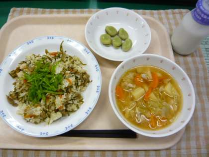 2年生と給食委員さんが、一生懸命むいてくれました。残さず食べましょう。