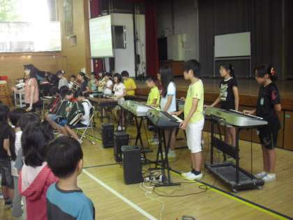 今日の音楽集会は、音楽委員会の子どもたちの伴奏で全員で「手のひらを太陽に」を合唱しました。