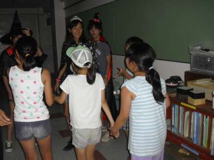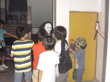 お化け役は卒業生の子どもたち。ところどころで身を潜め、歩いてくる後輩たちを驚かせていました。中には後輩を気遣うやさしいお化けもいました。