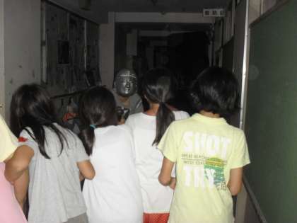 最後は校舎内での肝試し。人気のない真っ暗な廊下を歩き、物静かな教室に入ると、あちらこちらから子どもたちの叫び声が。