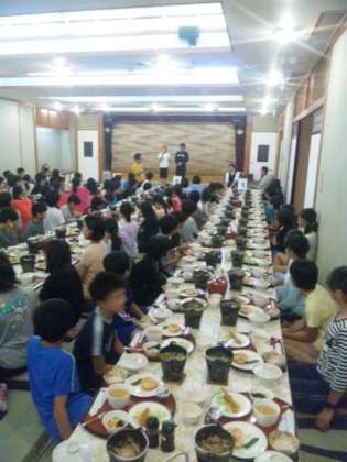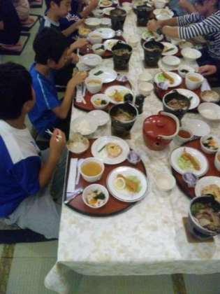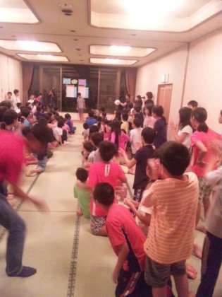日光林間学園2日目5 公開日 2014/07/20 更新日 2014/07/20 校長室より 日光林間学園、最後の夕食。今日はたっぷり歩いたので夕食もしっかり食べていました。雨のため、きもだめしは残念ながら中止。その代わりに室内レクレーションを行いました。折り紙を手で切って長さを競ったり、風船にはってあるセロテープを上手はがすなどクラスス対抗で楽しみました。今日はこのあと就寝の準備をしてゆっくりと寝るだけです。明日は東照宮と富弘美術館を見学して、用賀に帰ります。