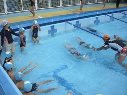2日目の今日は検定をしました。自分の目標に向かって必死になって泳ぐ子どもたちの姿がたくさん見られました。中には練習しながら、その中で検定をする班もありました。合格をした子は本当にうれしそうな表情をしていました。
