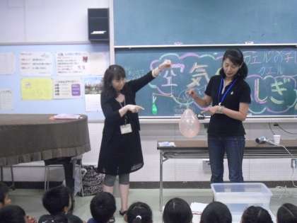 カエルの子はカエルによる「見てみよう!空気のふしぎ」教室が行われ、抽選に当たった1〜4年生の子どもたちが参加しました。