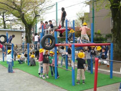 4/16 外遊びデビュー 公開日 2008/04/16 更新日 2008/04/16 学年 1年生は、今日から休み時間の外遊びデビューです。担任の先生と遊んだり、遊具で遊んだりしていました。黄色い帽子をかぶっているのが、1年生です。