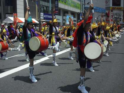 今回は初の試みとして明正小学校のエイサーチームとの共演もありました。同じ世田谷区の小学校としてこのまつりに参加している両校の子どもたちが、よきライバルであり、よき仲間として共演できたことはよい思い出の1つにもなりました。
