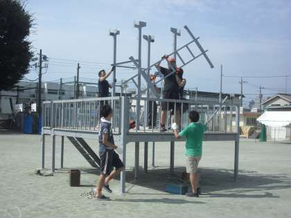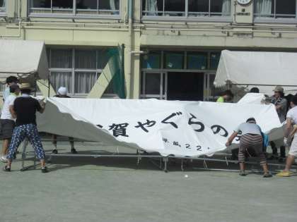 やぐらやテントの解体、机やいす拭き、借用物品の返却、教室や廊下のシートはがしや清掃、ゴミ捨てなど山のような仕事ですしたが、やぐらの会、保護者や地域の皆様、教員と大勢の力で仕事を終えることができました。