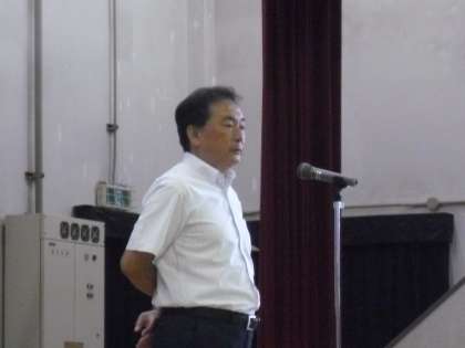 実は君たちがたいへんお世話になった原島謙一先生ですが、今日9月1日より港区立笄小学校の副校長先生になりました。また、改めてお別れの離任式をします。