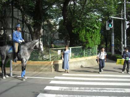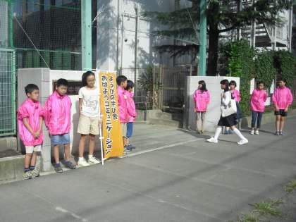 おはコミの2日目。今日も用賀中学校の2つの門には用賀小と京西小の子どもが一緒に立ち、登校してくる中学生とあいさつをしました、また、街のところどころには保護者に皆様が立ってくださり、あいさつ運動をしていただいています。用賀小学校にもたくさんの中学生が来てくれました。お馬さんもいつものように子どもたちの登校を見守ってくれています。