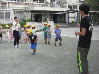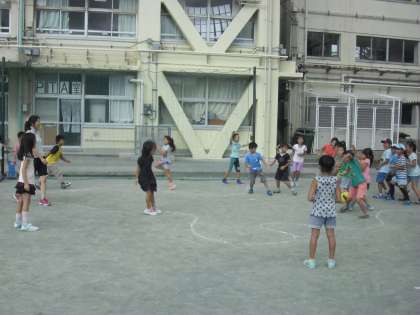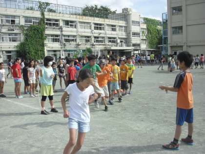 9/3 わくわくタイム 公開日 2014/09/03 更新日 2014/09/03 特色ある活動・取り組み 今日の朝はクラスで遊ぶするわくわくタイム。もちろ担任の先生も一緒に遊びます。おにごっこやボール遊びをしているクラスもありましたが、多くのクラスが長なわ跳びをしていました。 1年生もじょうに跳べるようになってきました。クラスの中で互いに声をかけ合ったり、友達を手助けしたりしている様子も見られました。遊びの中でも子どもたちのいろいろな育ちを見ることができます。