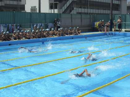 そして、最後は恒例の水泳記録会。全員がいずれかの種目にエントリーし、この夏の成果を出し合いました。