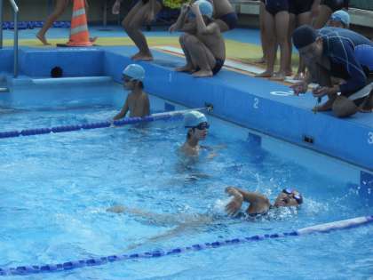泳ぐことは自分自身と向き合うことですが、まわりには常に励まし合ったり、競い合ったり、喜び合ったりする友達がいます。そうしたことからも子どもたちは水泳を通して大切な経験をしています。