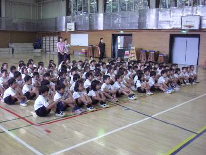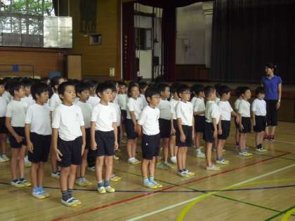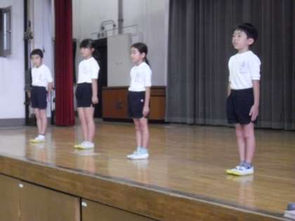 9/11 2年プール納め 公開日 2014/09/11 更新日 2014/09/11 今日のできごと 2年生も体育館でのプール納めとなりました。2年生になると代表の子の言葉も立派で、姿勢がよく、はきはきとこの夏の自分のふり返りを発表することができました。 2年生は夏休みのプールにもたくさんの子が参加をし、練習を重ね、自分の泳力を伸ばすことができました。 最後に全員でプールに向かって大きな声で「ありがとうございました」と感謝の言葉を言っていました。