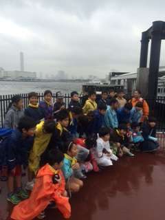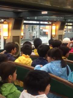社会科見学4年生1 公開日 2014/09/25 更新日 2014/09/25 校長室より 4年生の社会科見学は東京都内めぐりです。小雨が降ったりやんだりのお天気ですが、子どもたちは興味深く先生やガイドさんの話を聞いています。首都高速道路から都心部のビルや建物を説明を聞きながら見学をしています。最初の目的地、日の出桟橋に到着しました。これから水上バスに乗って見学をしながら浅草に向かいます。