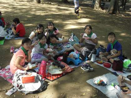 昼は駒沢公園でお弁当。見学の緊張からもしばし解放され、友達と楽しい時間を過ごしました。