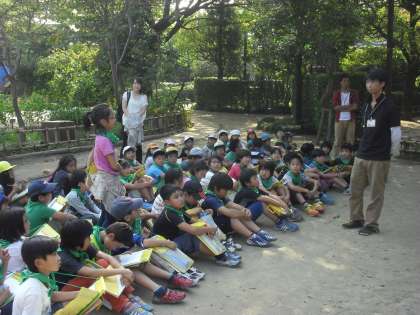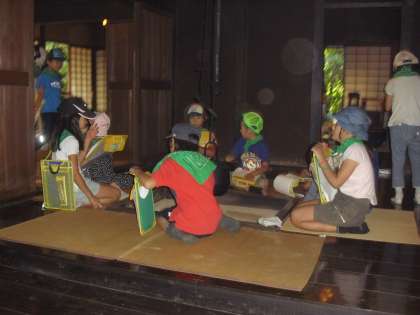 最後の見学地は次大夫堀公園。古民家を見学しながら、ひと昔前の人々のくらしを感じていました。土間にある釜戸や流しを見て、ある子は「ここでご飯を作るのは大変そう」と言っていました。