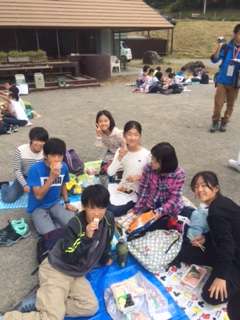 渋滞もなく予定通り、なかのビレッジに到着しました。開室式では校旗を揚げて、なかのビレッジが今日から三日間、用賀小学校になって学習をしていくを確認しました。また、お世話になる、なかのビレッジの方に対して代表児童が立派なあいさつができました。開室式が終わってお弁当タイムです。ごはんの歌を全員で歌い、作っていただいた方々に感謝して食べていました。全員で集合写真を撮り、このあと各部屋に入ります。