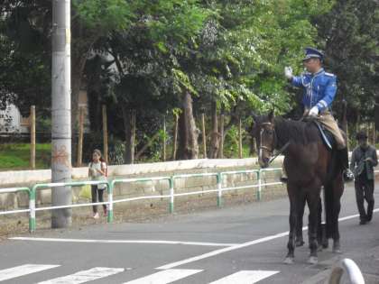 また、角の交差点ではいつものようにお馬さんが子どもたちの登校を見守ってくれていました。警察の方には感謝の気持ちでいっぱいです。