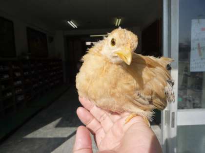 12/1 チャボのひながもうこんなに・・・ 公開日 2009/12/01 更新日 2009/12/01 校長室より 9月に生まれたチャボのひながこんなに大きくなりました。この頃は朝晩が冷え込むので、担当の先生の教室に入れて育ててきましたが、もう大丈夫です。ひなというには大きすぎるくらいに育ちました。それぞれ個性があって3羽とも顔つきが違います。1羽は、とさかが赤く大きくなってきたのでオスに違いありません。後の2羽は顔つきも優しいのでめすかな?