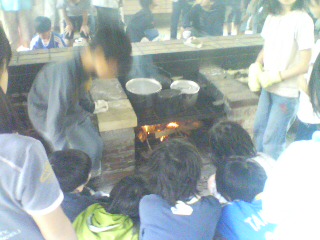 天気も何とかもち、みんなでがんばって豚汁を作っています。初めての経験なので、どんな結果になるのやら楽しみです。きっとおいしい豚汁になるでしょう。