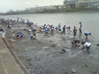 4/24 5年生遠足「潮干狩り」 公開日 2008/04/24 更新日 2008/04/24 学年 お昼の片付けも手早く終わり、潮干狩りです。風が強くてちょっと寒いですが、みんな元気に潮干狩りをしました。今年は貝が少ないということで収穫は少なめでしたが、また、貝を採らずにごみをたくさん拾ってくれている子もいました。とても楽しく過ごしました。