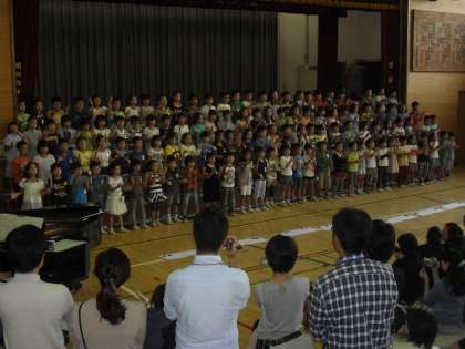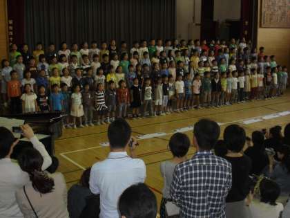 子どもたちは元気に心をこめて歌う、鍵盤ハーモニカをきれいな音色で演奏するなどのめあてをもってこれまで木田先生と練習をしてきました。また、難しい手拍子にもチャレンジしました。子どもたちのすてきな発表、頑張っている姿や成長した姿をたくさんの方に見ていただきました。