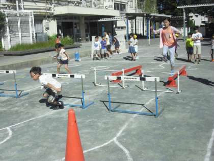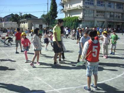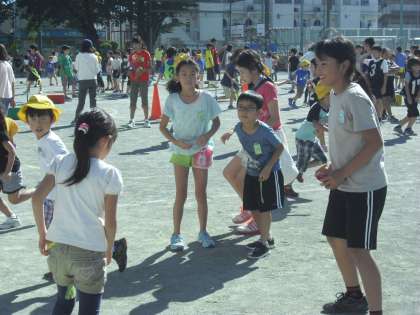台風が去った後の晴天のもと、異学年交流遊びのなかよしタイムが行われ、どの班も楽しく遊びことができました。