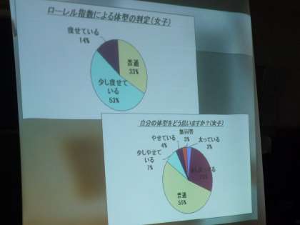 こんなにやせている実態があるにもかかわらず、子どもたちは自分は普通程度か、太っていると考えていることです。これは特に女子に顕著に表れていました。