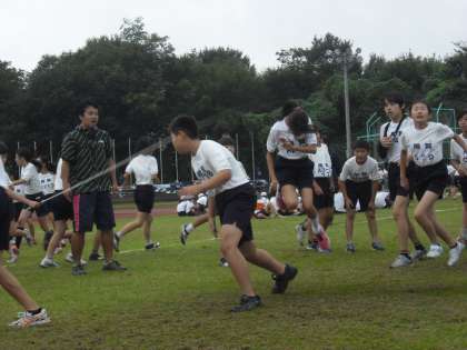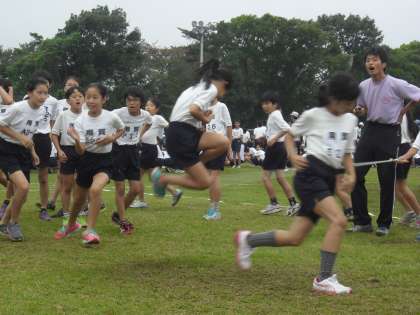 なれない芝の上での競技は思った以上に難しさもありましたが、みんなで集中力をもつことでよりよいリズムでとぶことができるようになっていきました。また、うまくとべなかった友達にも励ましの声をかけ、子どもたちの気持ちが結集するのを感じました。