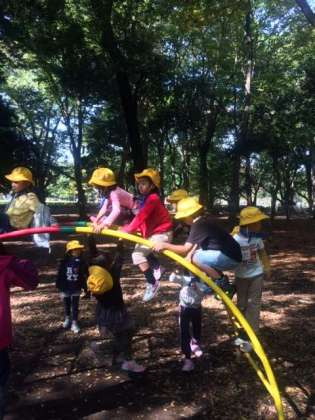 遠足一年生1 公開日 2014/10/24 更新日 2014/10/24 校長室より 雨で延期になった一年生の遠足でしたが、今日は秋晴れの素晴らしい天気に恵まれ砧公園に向けて出発しました。集合写真を撮り、遊具で遊んだりドングリ拾いしたり楽しい時間を過ごしています。