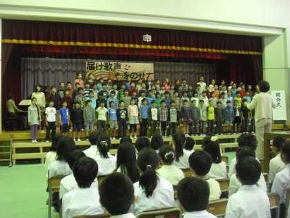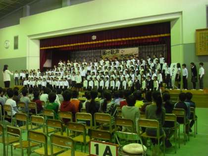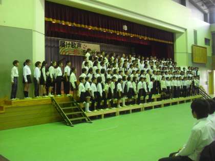コンクール前のリハーサルで練習を兼ねて用賀小と京西小の5年生が歌声を聞き合いました。そして、いよいよ本番です。子どもたちは中学生の見守る前ということもあり緊張はしていたものの、5年生らしい素直な歌声を多くの皆さんに聞いていただくことができました。