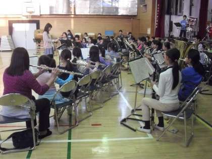 今は11月3日に用賀中学校で行われるYCCフェスティバルでの演奏に向けて練習を頑張っています。今日は本番を想定して体育館で全体練習をしました。皆さんにすてきな演奏を聞いていただけるように先生の指導のもと繰り返し練習をしていました。
