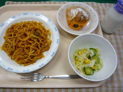 今日はハロウィンです。そこで今日は、「かぼちゃ」を使ったマフィンを作りました。クイズです。かぼちゃの旬(たくさんとれて、おいしい時期)はいつでしょうか?