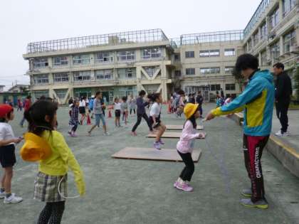 今日もみんな順番を待ってこの上でなわとび練習。これから寒くなるけれど、楽しくなわとび練習を続けていきたいですね。
