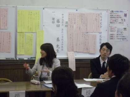 研究協議会では授業者の深水先生が今日の授業への思いをたくさん語っていました。教師として自分の授業に思いをもつことはとても大切なことで、その姿に深水先生の確かな成長を感じました。