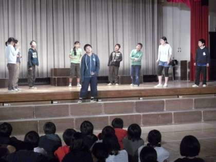 どの子も気持ちを込めた台詞、全身を使った演技など、一生懸命に取り組んでいる様子が伝わってきました。さすがは6年生です。最後の学芸会にかける子どもたちの強い思いが感じられました。練習後はグループごとに先生と振り返りもしていました。