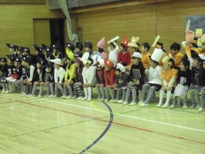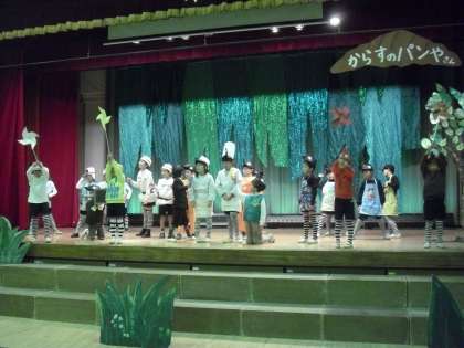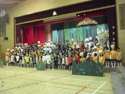 11/20 1年学芸会練習 公開日 2014/11/20 更新日 2014/11/20 今日のできごと 1年生の劇は「からすのパンやさん」。衣装を身に付け、道具をした子どもたちはすっかり役になりきっていました。大きな声での台詞、身振り手振りを入れた動きはとても1年生とは思えません。また、最後の全員の歌も元気な声でお見事です。 初めての学芸会ですが、とても立派な練習態度です。1年生が当日どんな姿を見せてくれるのか、とても楽しみです。