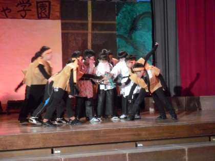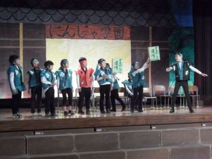 11/25 2年学芸会練習 公開日 2014/11/25 更新日 2014/11/25 今日のできごと 2年生の劇は「あやうし!にんじゃ学園」。子どもたちが扮する忍者が昇級試験のために修行中。劇では忍者がいろいろな忍術を見せてくれます。そして、劇の終わりには思わぬどんでん返しが。 学芸会に初めて挑戦する2年生が元気いっぱい楽しい劇を見せてくれます。どうぞお楽しみください。
